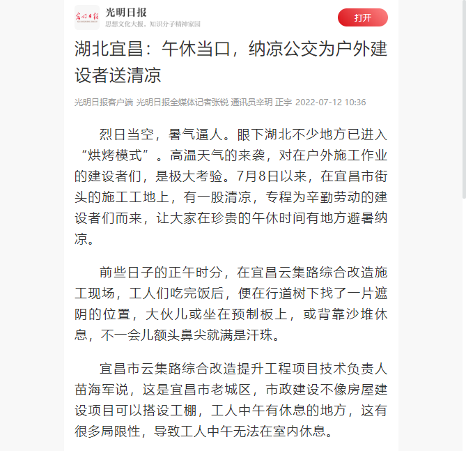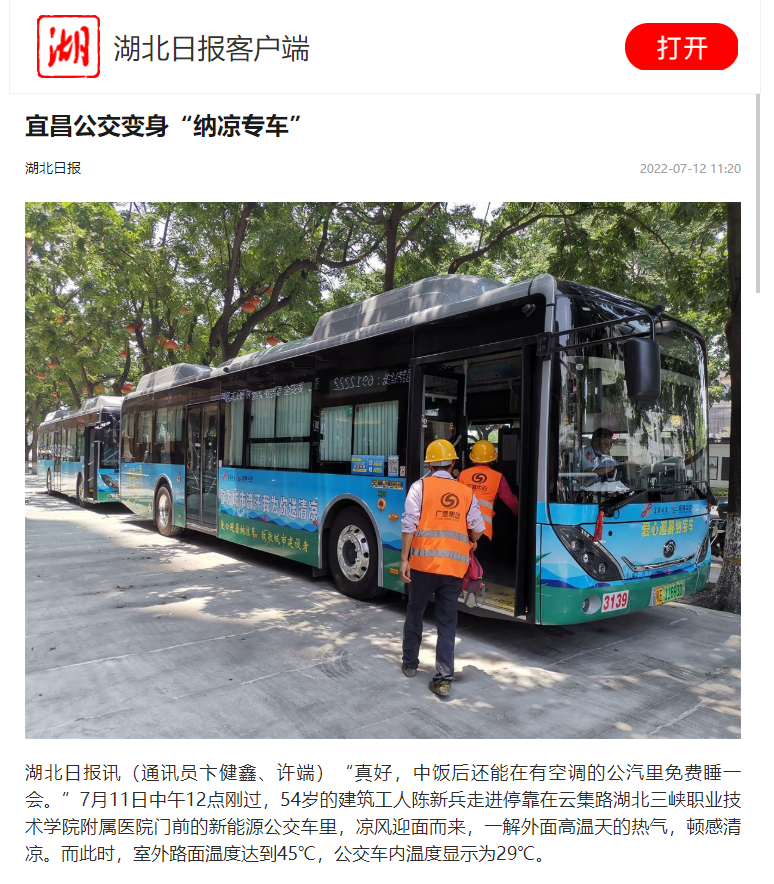 【媒体聚焦】湖北宜昌:爱心避暑纳凉公交为户外建设者送清凉
